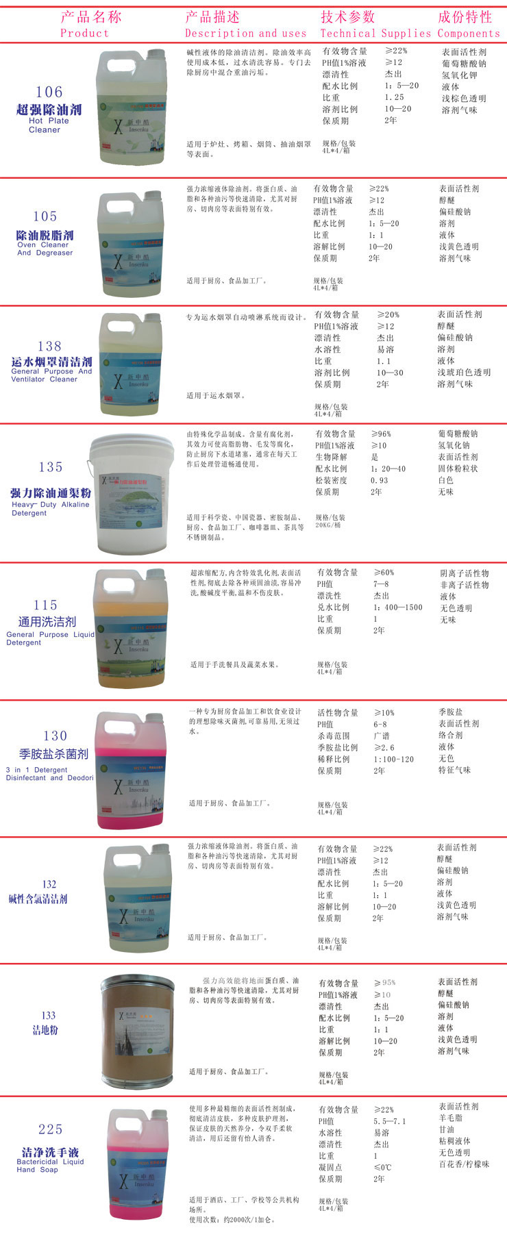 | WE115 通用洗潔劑 | WE131 季胺鹽殺菌劑 | WE132 堿性含氯清潔劑 |